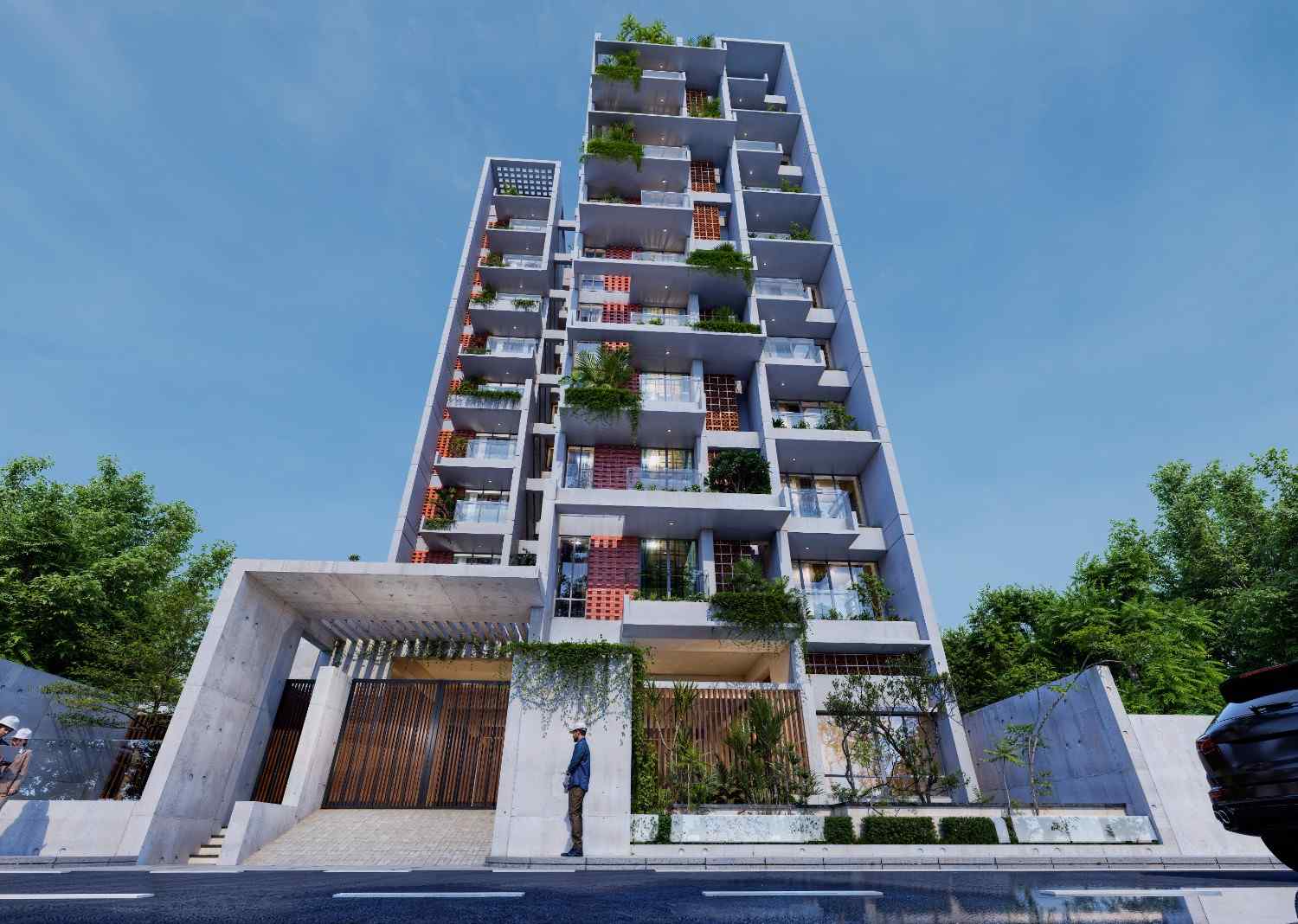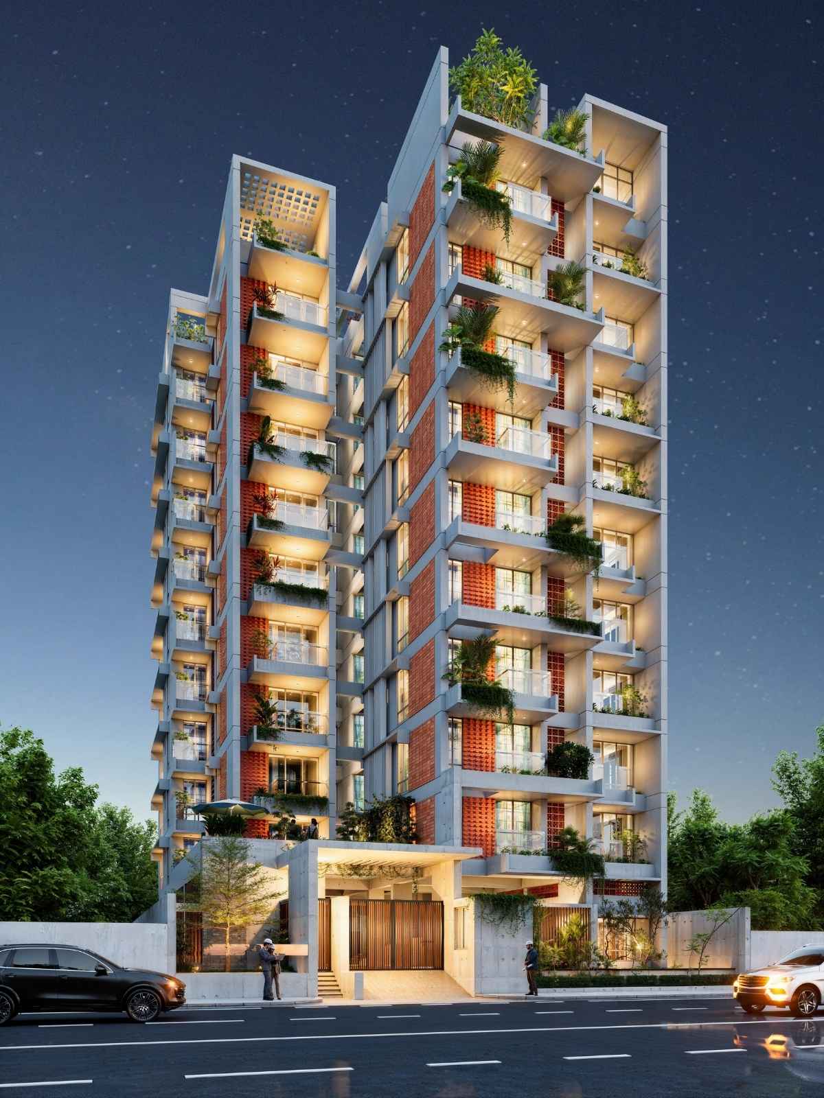 AHMED BUILDERS G+9 Storied Residential Building was designed to address Dhaka’s pressing urban challenges, such as overcrowded streets, limited open spaces, and the growing disconnect within communities. The project redefines urban living by creating a self-contained community that fosters interaction among residents, encourages outdoor activities, and offers all essential facilities within its boundaries.